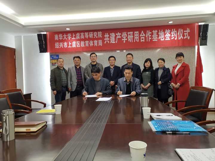 上虞区教体局党委委员、副局长华相炯,教体局党委委员、人事科长葛泞华,上虞区科创办综合服务处处长罗建峰,上虞中学副校长姚荣源,南华大学上虞高等研究院副院长彭国文,南华大学上虞高等研究院办公室主任周才政,南华大学语言文学学院副院长马汉钦,语言文学学院英语系教师胡鸿雁、王艳萍、阳卓君等参加协议签订。