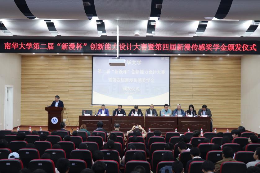 10月27日下午,南华大学第二届“新漫杯”创新能力设计大赛暨第四届新漫传感奖学金颁发仪式在南华大学雨母校区崇业楼学术报告厅举行。上海应用物理研究所氚科学与工程部主任兼中科新核总经理刘卫、上海新漫传感科技有限公司副总经理吴斌、人力资源总监金玲等企业代表,学校相关职级部门与学院负责人及获奖学生代表参加仪式。仪式由电气工程学院院长王国富主持。
