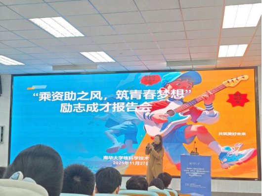 为推进资助育人工作,发挥榜样引领作用,,11月27日下午,核科学技术学院在核学楼225报告厅举办“乘资助之风,筑青春梦想”励志成才报告会。学院党委副书记徐婵娟与120余名师生共同聆听四位国家奖助学金获得者的成长分享。