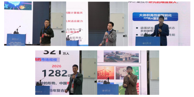 在研究生汇报环节,来自多所高校的研究生代表聚焦“核+X”交叉前沿,围绕甲状腺靶向显像、放射性废物固化处理、核动力装置故障诊断等方向展开汇报,展现出扎实的专业功底与创新意识。师生互动积极,研讨气氛热烈。