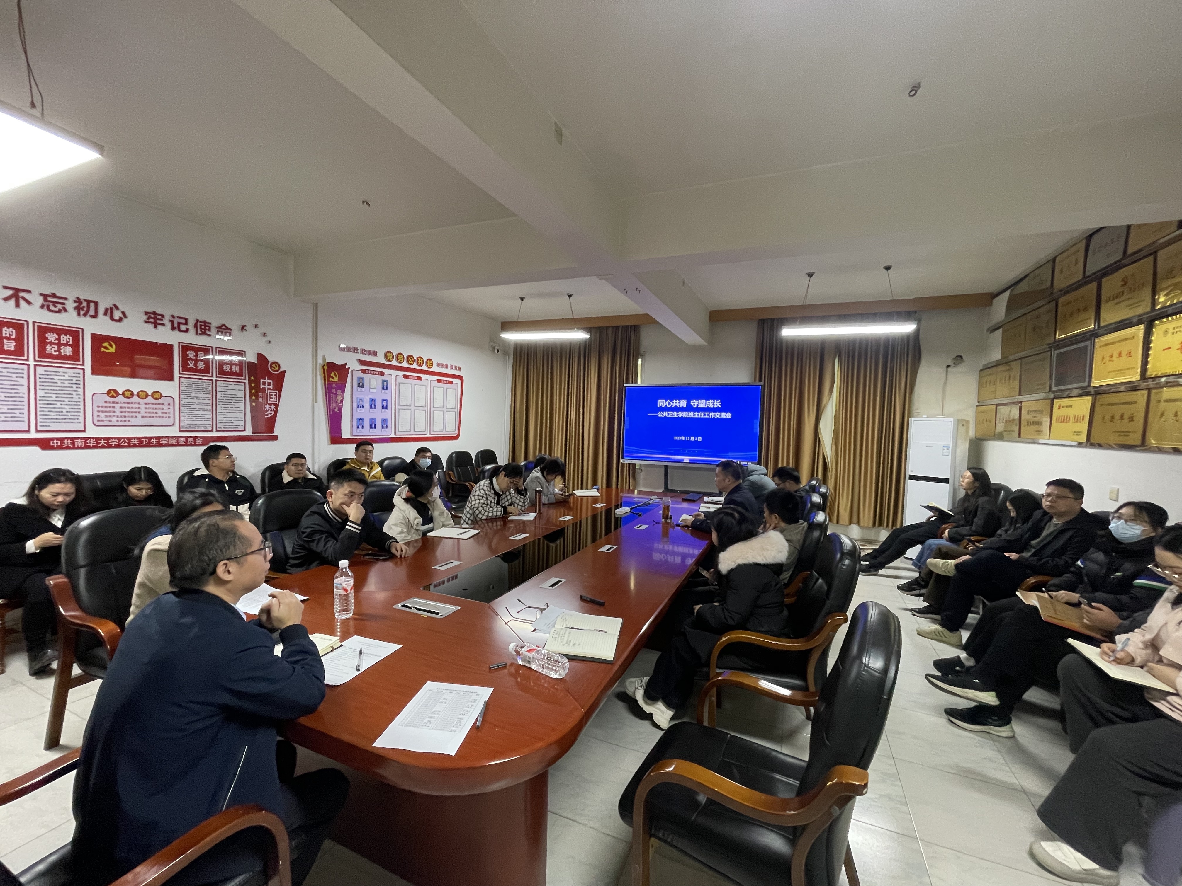 12月3日上午,公共卫生学院在院办会议室举办班主任工作交流会。学院党委书记龙鼎新、党委副书记曾志伟,副院长杨慧仙、副院长张朝晖,全体班主任及辅导员参会。