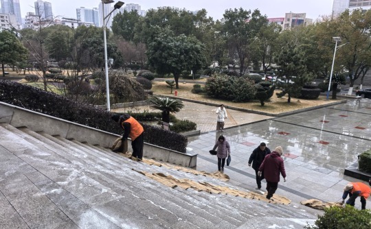 近日,随着低温雨雪冰冻天气预警,为切实保障师生安全出行,防范极端天气引发的各类事故,后勤服务中心迅速响应,启动应急措施,多措并举,筑牢校园安全。