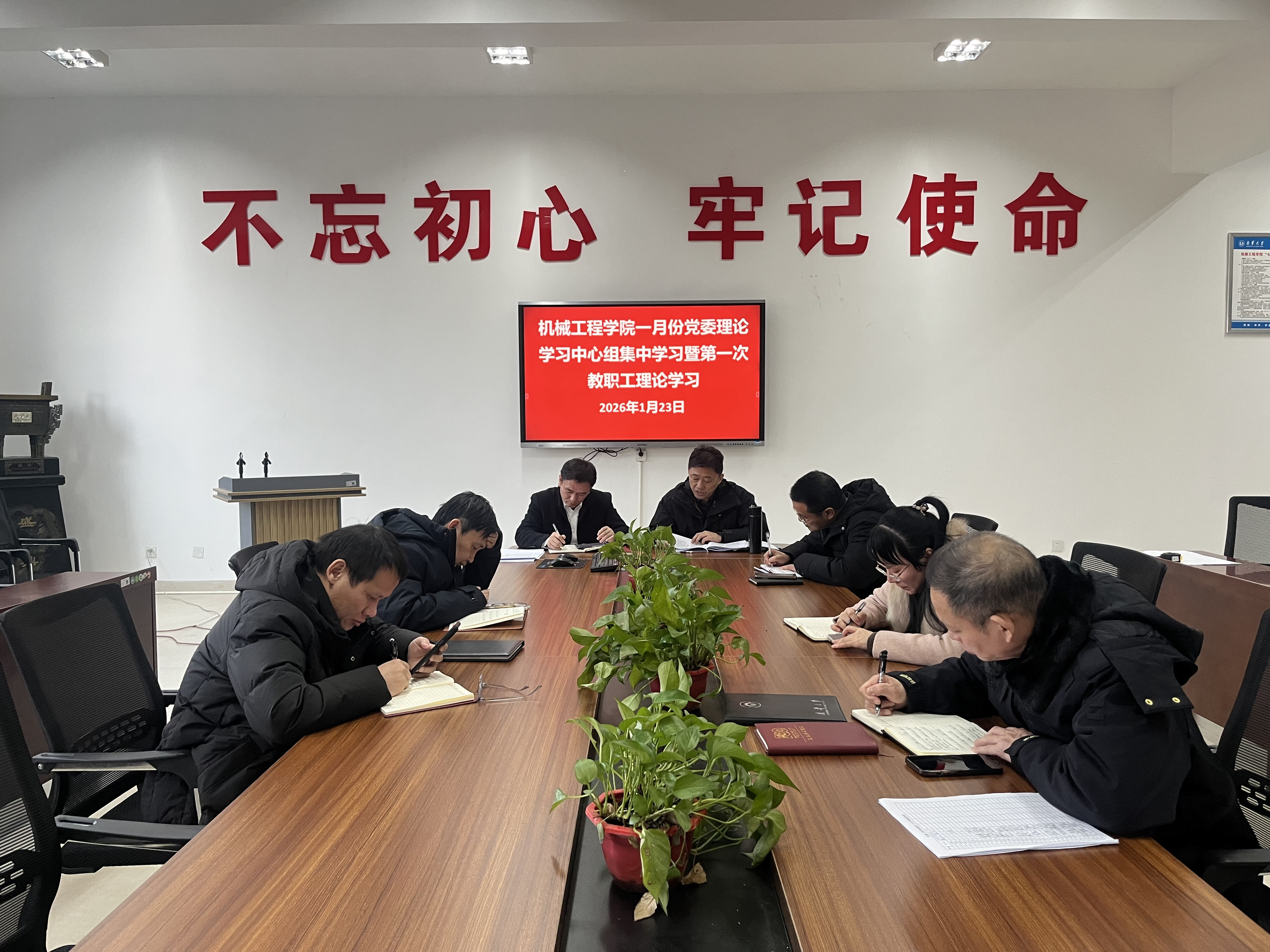 1月23日,机械工程学院党委在学院212会议室召开1月理论学习中心组(扩大)学习会暨第一次教职工理论学习。学院党委书记王湘江主持会议并讲话,院长单健,党委副书记唐康伟,副院长陈文波、朱红梅、柏兴旺参加会议。