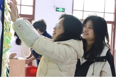 活动现场设置投壶、幸运抽奖、好运便利贴等互动环节,氛围温馨热烈。投壶区前,同学们从容投掷、默契配合,每一次命中都引来阵阵喝彩;抽奖环节人气高涨,趣味游戏与精美礼品为大家带来满满惊喜;便利贴区域,同学们纷纷写下真挚祝福,字里行间洋溢着青春暖意与美好期许,充分展现了学院对同学们的关怀与祝福。