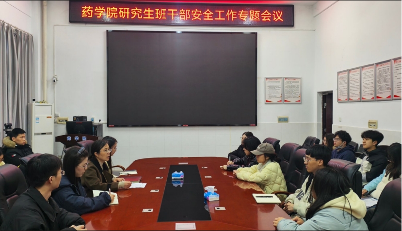 3月18日下午,药学院党委副书记陈健平召集研究生班干部在101会议室召开安全工作专题会议,传达学校安全教育管理相关要求,部署近期班级安全重点工作。25级研究生班主任许婷、兼职研究生辅导员杨丝棋、全体研究生班干部参加会议。