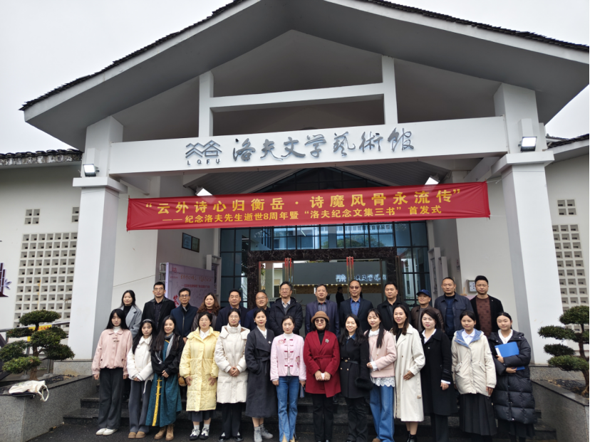 3月19日,“云外诗心归衡岳,诗魔风骨永流传”——纪念洛夫先生逝世8周年暨“洛夫纪念文集三书”首发式在衡阳洛夫文学艺术馆举行。语言文学学院党委书记龙志坚、院综合办公室主任蔡恒玲、团委书记肖玲慧带队,带领4名学生代表参与现场朗诵环节,衡阳市朗诵艺术协会理事王蓓担任朗诵指导,与各界文化人士共赴这场文学之约,缅怀“诗魔”洛夫,赓续湖湘文脉。