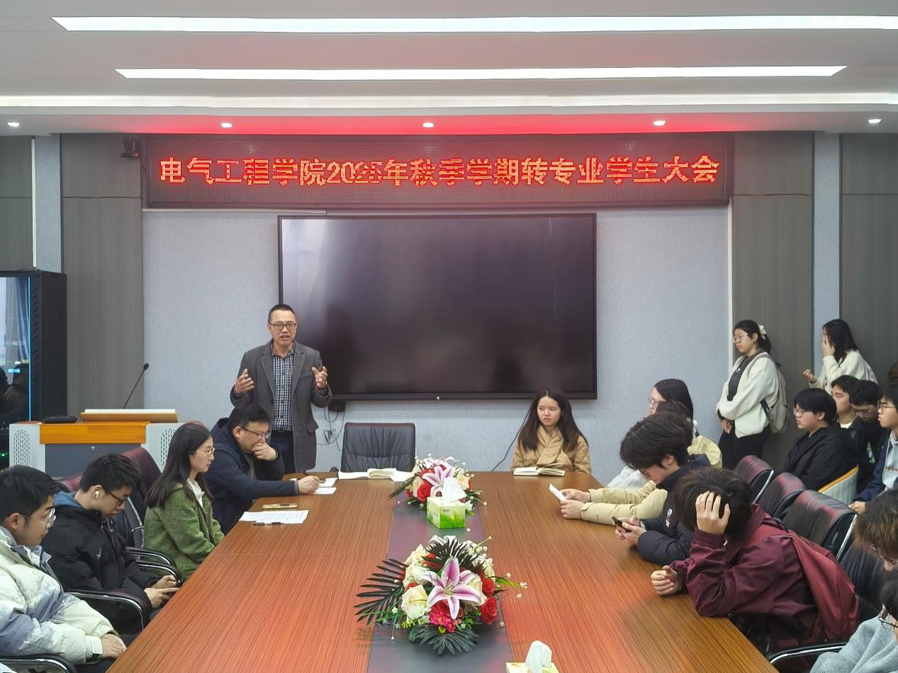 3月25日午,电气工程学院于崇业楼召开转专业学生大会。学院党委副书记王国平、学工室全体辅导员、优秀学生代表,及2025年秋季学期全体转专业学生参会。