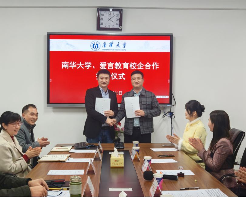 3月25日下午,语言文学学院与爱言教育校企合作签约仪式在学院会议室举行,语言文学学院师生代表及爱言教育代表参加,学院党委书记龙志坚主持仪式,与会各方共同见证校企协同育人的重要时刻。