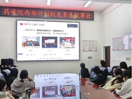3月29日,药学院西部计划校友青春分享会在新二教101报告厅举行。本次活动特邀2021届毕业生、江西省萍乡市上栗县东源乡人民政府志愿者曾钰骄,2022级药学专业硕士研究生、一师阿拉尔市塔里木职业技术学院志愿者王玉珏,通过云端连线的方式,为线上线下近百名师生带来了一场青春分享会,传递基层奉献的时代力量。