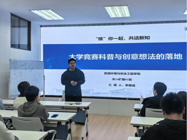 3月30日晚,核科学技术学院在核学楼会议室开展第一期“‘核’你一起・共话新知”活动。本次活动以“大学竞赛科普与创意想法的落地”为主题,特邀创新创业优秀学子、衡阳市智探识别科技有限公司创始人、湖南省大学生职业规划大赛金奖获得者李想成作分享。