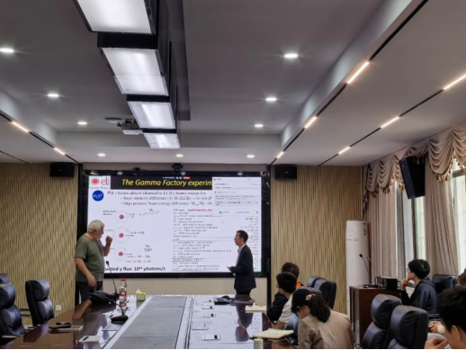访问期间,Balabanski教授与学院罗文教授课题组举行多场专题研讨会,重点围绕靶向α治疗用225Ac同位素的辐照产生实验方案和基于上海激光电子伽马源的联合实验方案进行深入探讨。他结合结合ELI-NP大科学装置的科研成果,系统讲授了光核反应物理、光核实验与探测技术、核共振荧光实验方法以及高功率激光的医学应用等方向内容,涵盖PDR研究、光中子反应截面测量、高功率激光驱动核反应等前沿课题。学院相关专业教师及研究生全程参与,并就激光加速质子、探测器模拟等具体问题与教授进行了深入探讨,学术氛围浓厚。