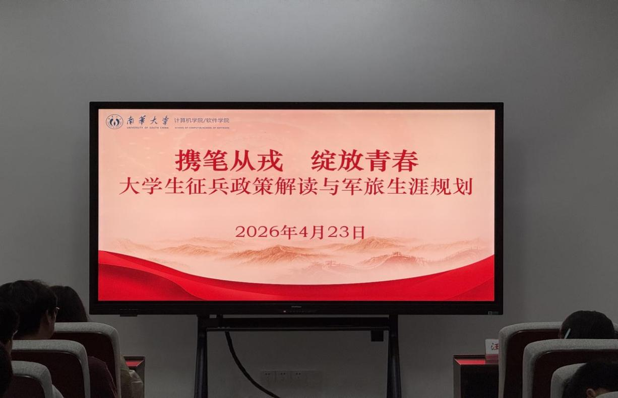 4月23日晚,计算机学院于学院楼举办征兵宣传讲座,校人民武装部教师汪先利与退伍学生汪玥受邀主讲。计算机学院及兄弟学院辅导员、学生共同参会。